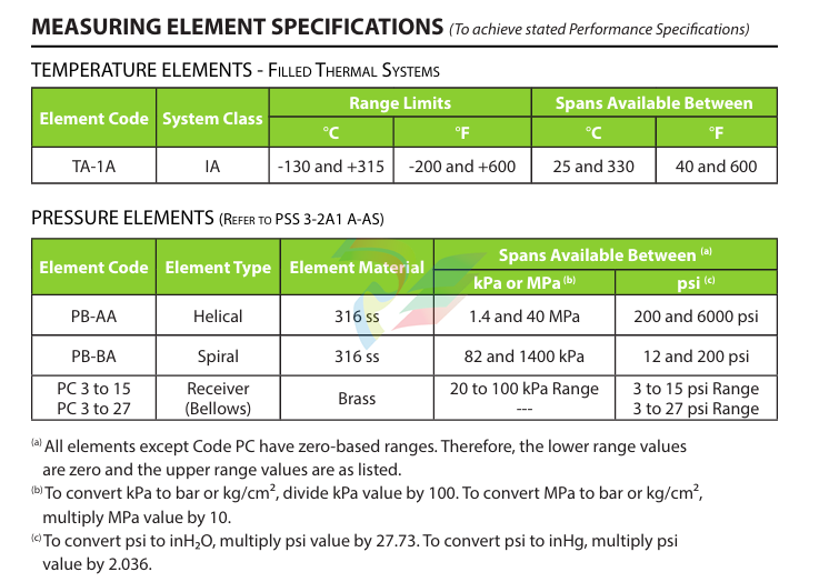 0 to 200 kPa, 0 to 30 psi, or 0 to 2 bar or kg/cm2.