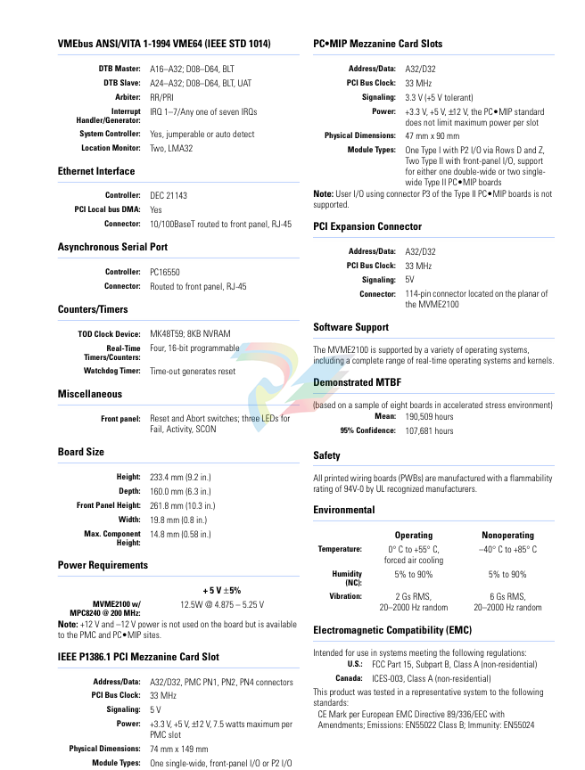 and PC•MIP mezzanine slots, the MVME2100 provides customers with a high