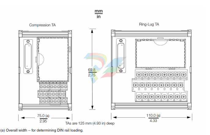 The DIN rail mounted TAs connect to the redundant adapter by means of a removable